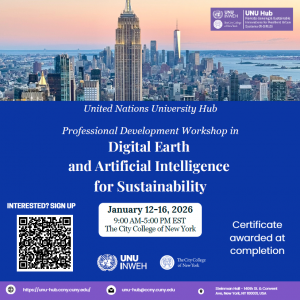 The UNU Hub on Remote-Sensing and Sustainable Innovations for Resilient Urban Systems (R-SIRUS), located at The City College of New York, is committed to enhancing scientific understanding, developing innovative solutions, and preparing a skilled workforce to tackle global challenges related to water, the environment, climate, energy, health, and sustainability. This Hub conducts research and develops educational programs to help students, faculty, and the public understand 1) drivers of climate change and biodiversity loss, 2) societal challenges from environmental changes like extreme weather, food security issues, diseases, and environmental justice, and 3) political influences on global environmental preservation and ecological services.