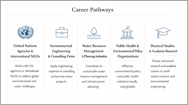 Interdisciplinary Curriculum: The program integrates natural sciences, engineering, and policy to address complex and interconnected environmental systems, empowering students to apply geospatial and analytical methods in areas such as disaster resilience, climate adaptation, and sustainable development.